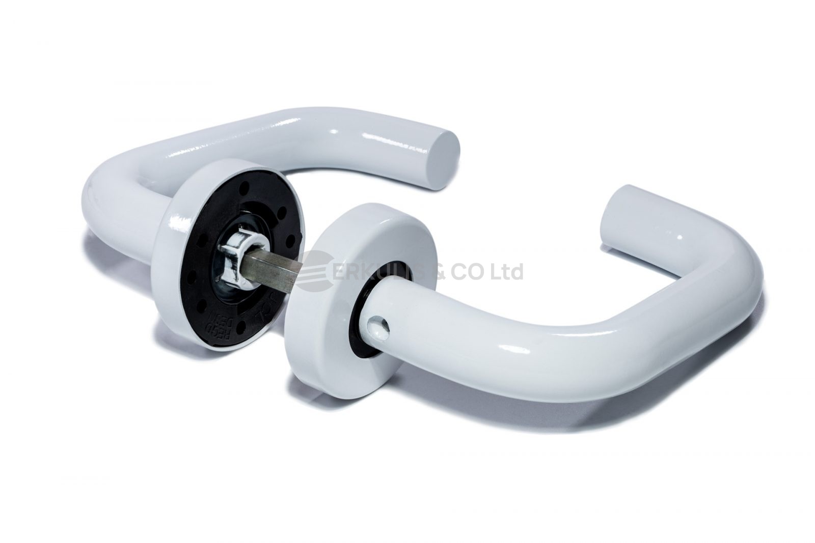 JCL Balts Durvju Rokturu Komplekts no 19mm AL stieņa ar Montāžas Skrūvēm un savienojošo stieni